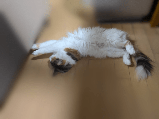 暑くてお腹を出してフローリングの上で伸びてる事が多いみたいで